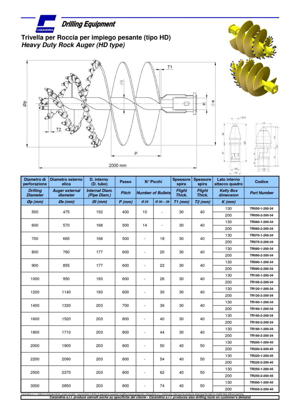 Trivella conica per roccia in versione Heavy Duty (HD). Progettata con picchi rinforzati per affrontare terreni rocciosi molto duri e compatti. Ideale per garantire la massima capacità di penetrazione e resistenza negli scavi più estremi.