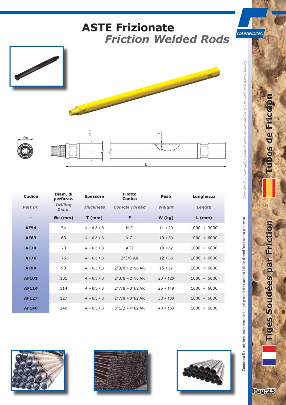 Aste frizionate realizzate con tecnologia di saldatura ad attrito, progettate per garantire la massima resistenza torsionale. L’assenza di discontinuità tra il tubo e il giunto assicura un’integrità strutturale superiore, rendendole la scelta ideale per garantire affidabilità e sicurezza nelle operazioni di perforazione più gravose.
