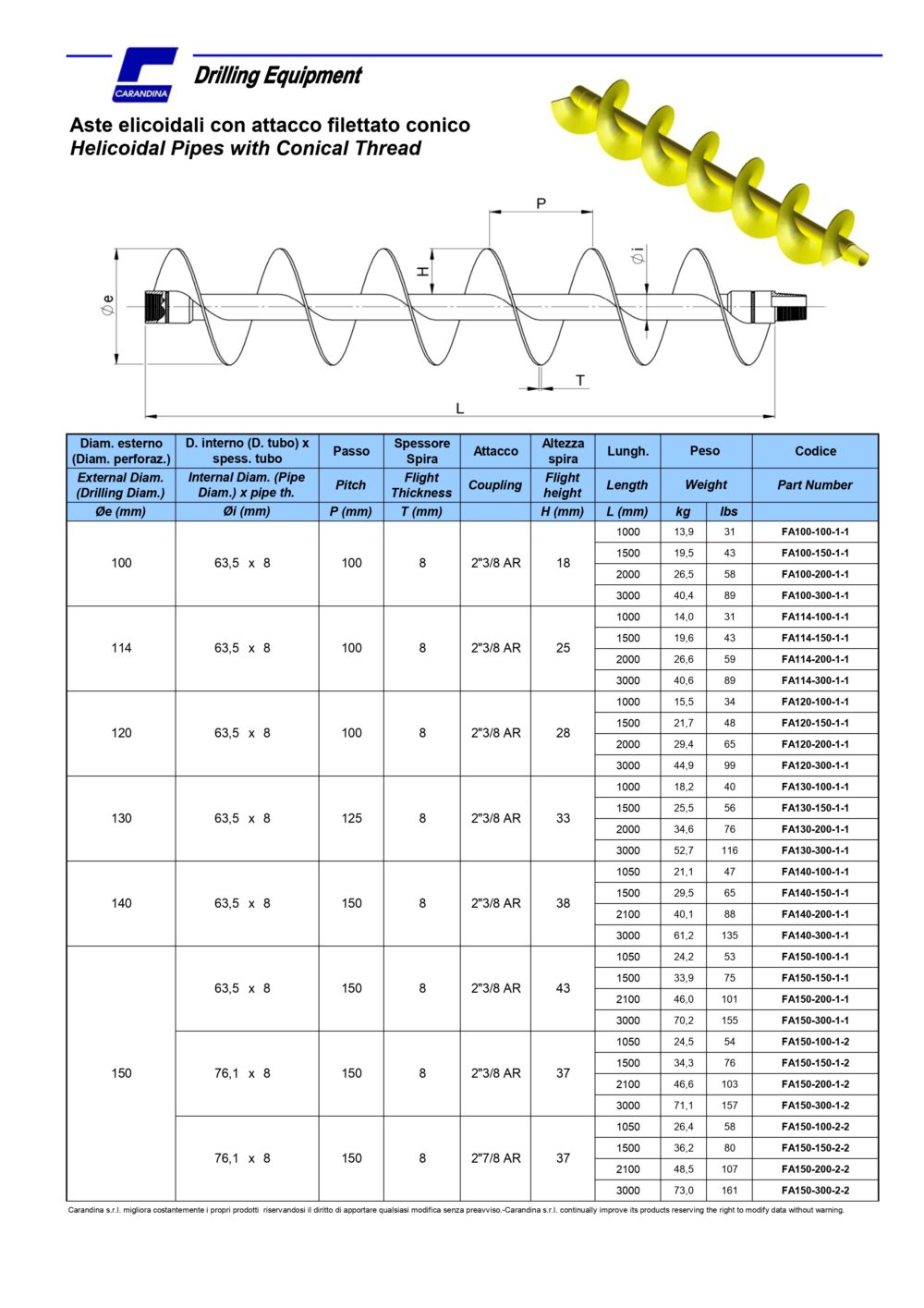Aste elicoidali con attacco filettato conico | Helicoidal Pipes with Conical Thread