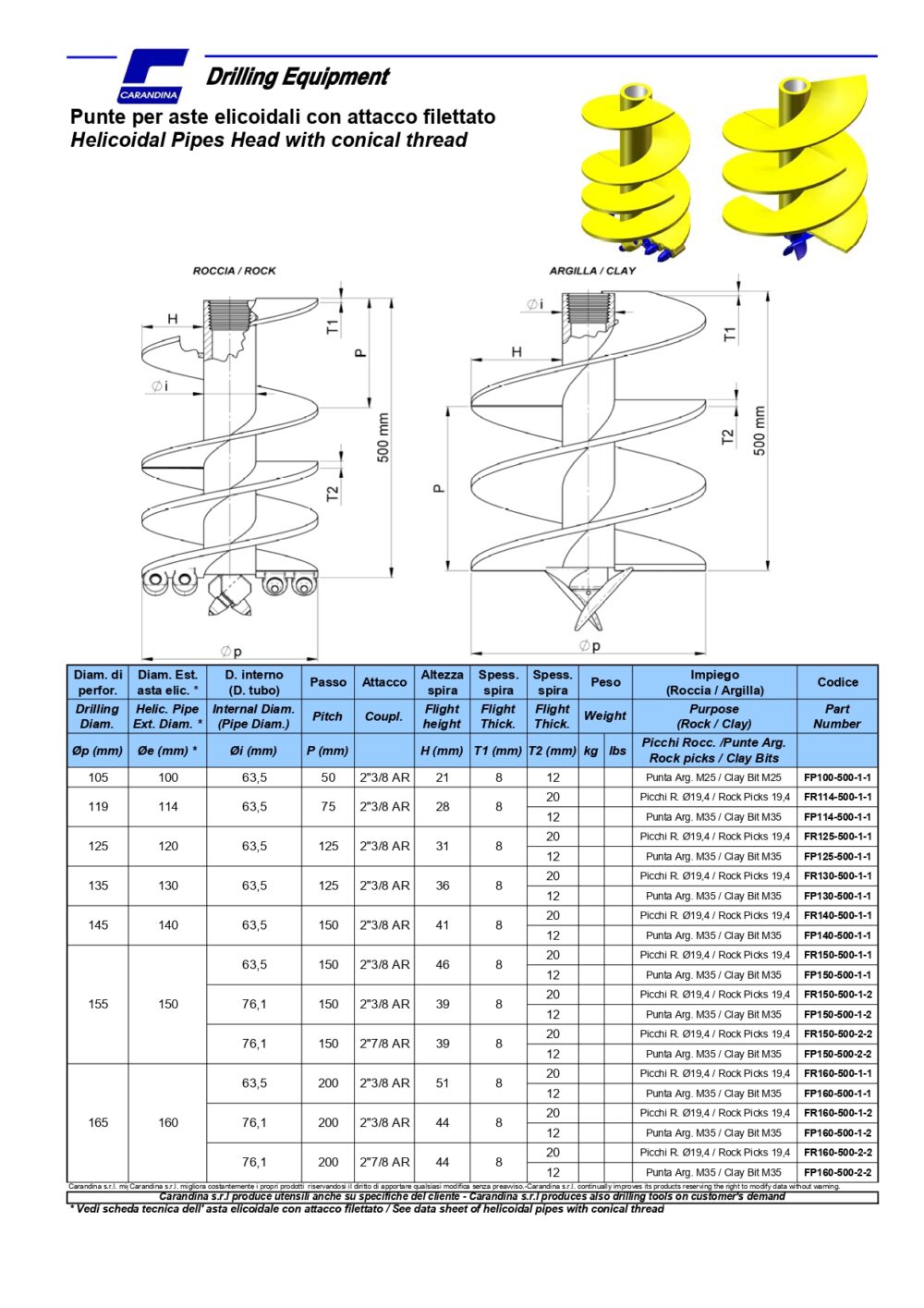 Aste elicoidali con attacco calettato ad alte prestazioni. Disponibili in due varianti specifiche: per terreni rocciosi e per terreni argillosi. Progettate per garantire la massima resa di scavo in ogni condizione.