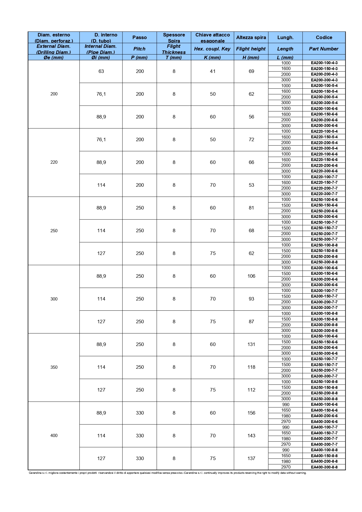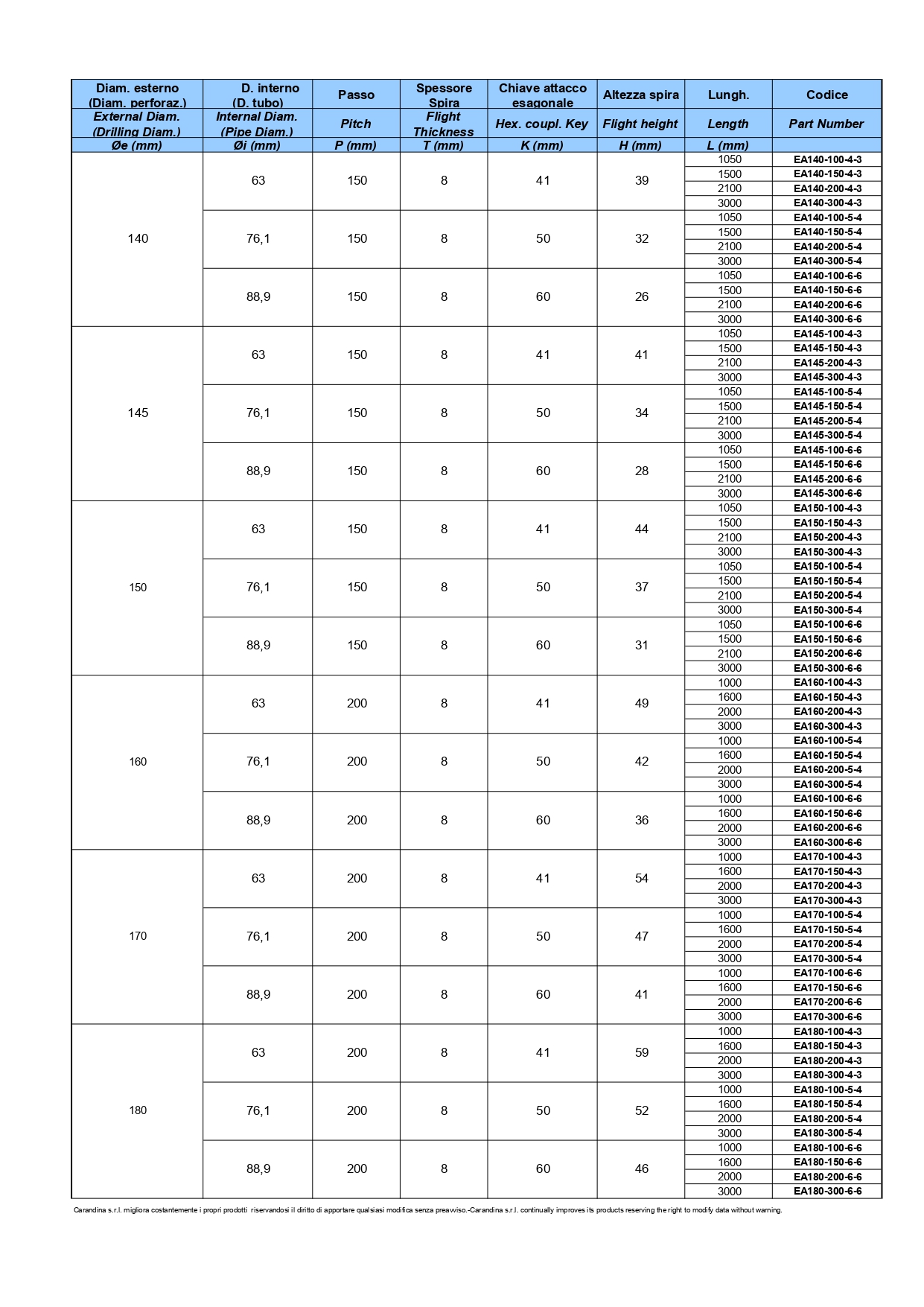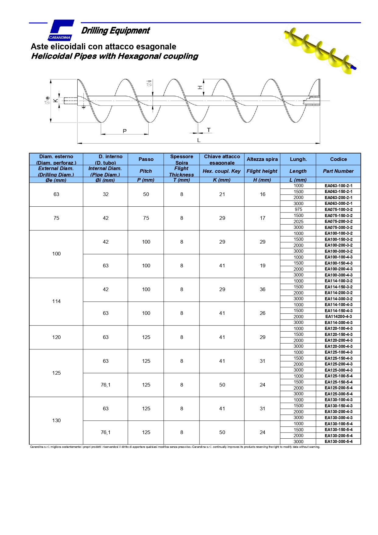 Aste elicoidali con attacco esagonale | Augers with Hexagonal coupling